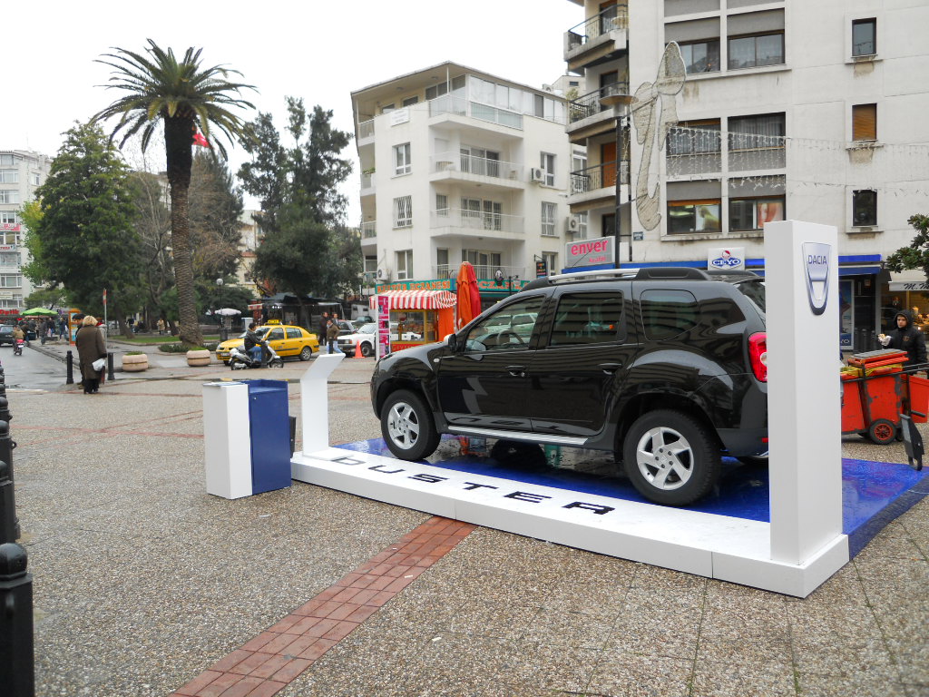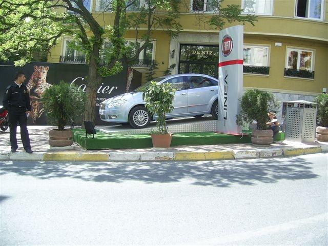 Markalar ve medya planlamacılar daha önceden kullanılmamış alanlarda araç sergilemenin peşindeler. Renault'un Kanyon Avm'nin gerisindeki refüj'de, Toyota Avensis'in ise Mecidiyeköy Meydan'da gerçekleştirdiği yayınlar bu duruma en güzel örnek.