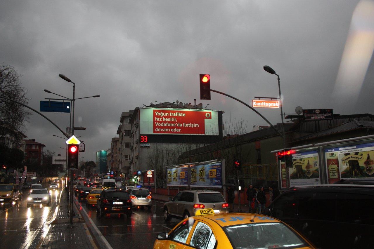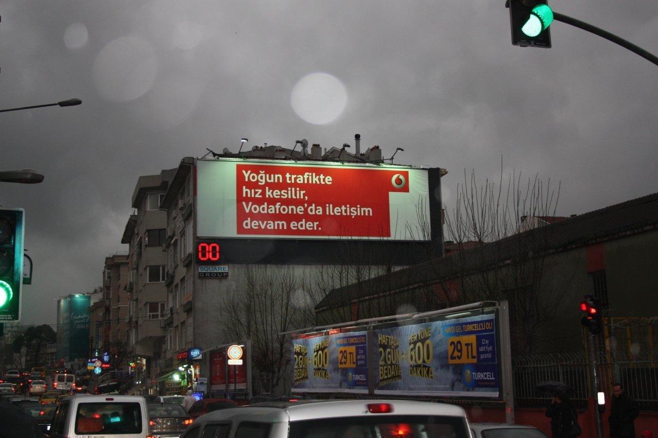 Vodafone, yeni "Kapsama" kampanyası dahilinde Balmumcu ve Kızıltoprak duvarlarında gerçekleştirdiği, trafik lambaları ile senkronize bir şekilde çalışan afiş değişticili duvar özel uygulamalarında, trafiğin en yoğun olduğu noktada "Yoğun trafikte hız kesilir, Vodafone'da iletişim devam eder" mesajı veriyor.